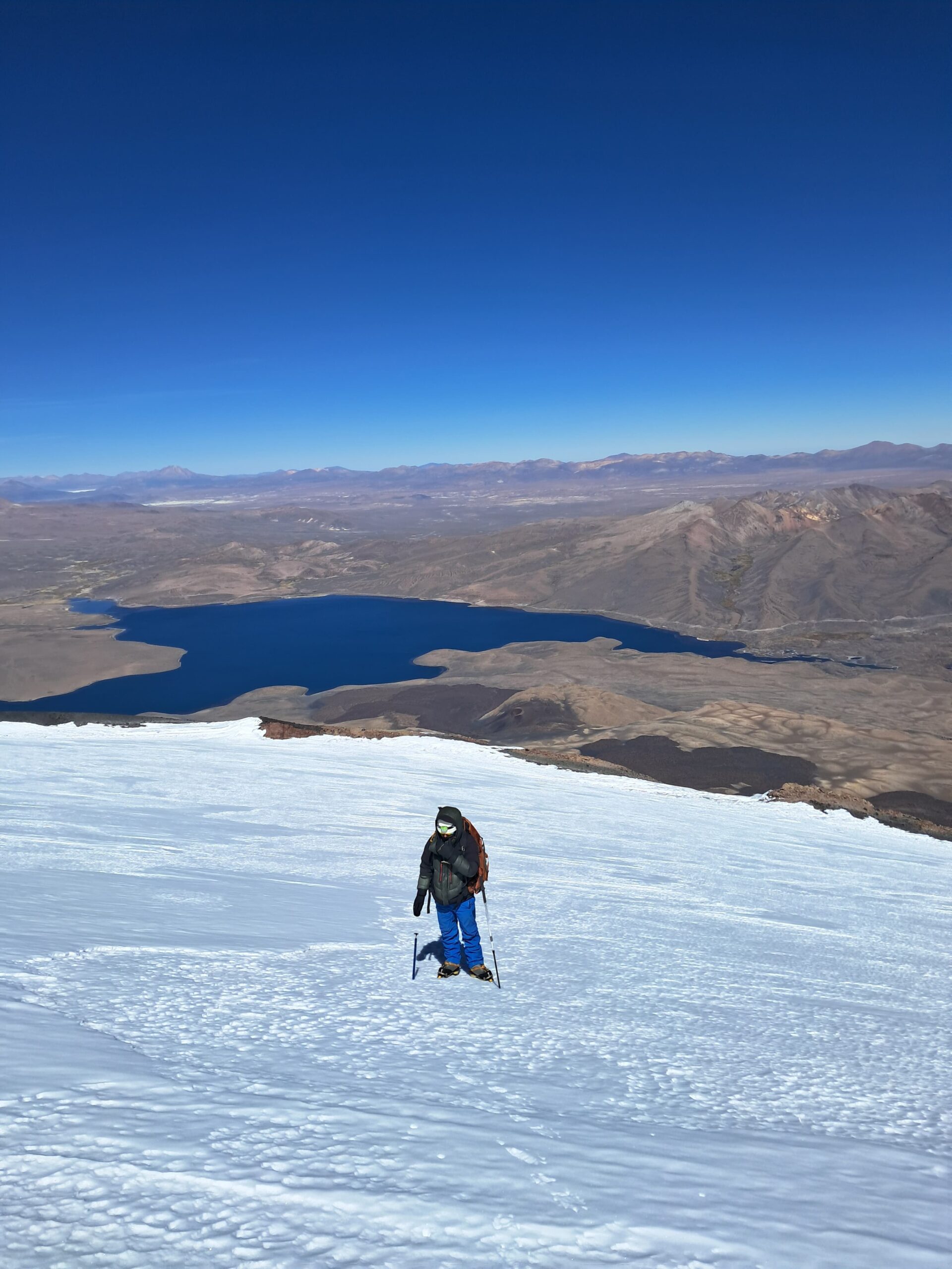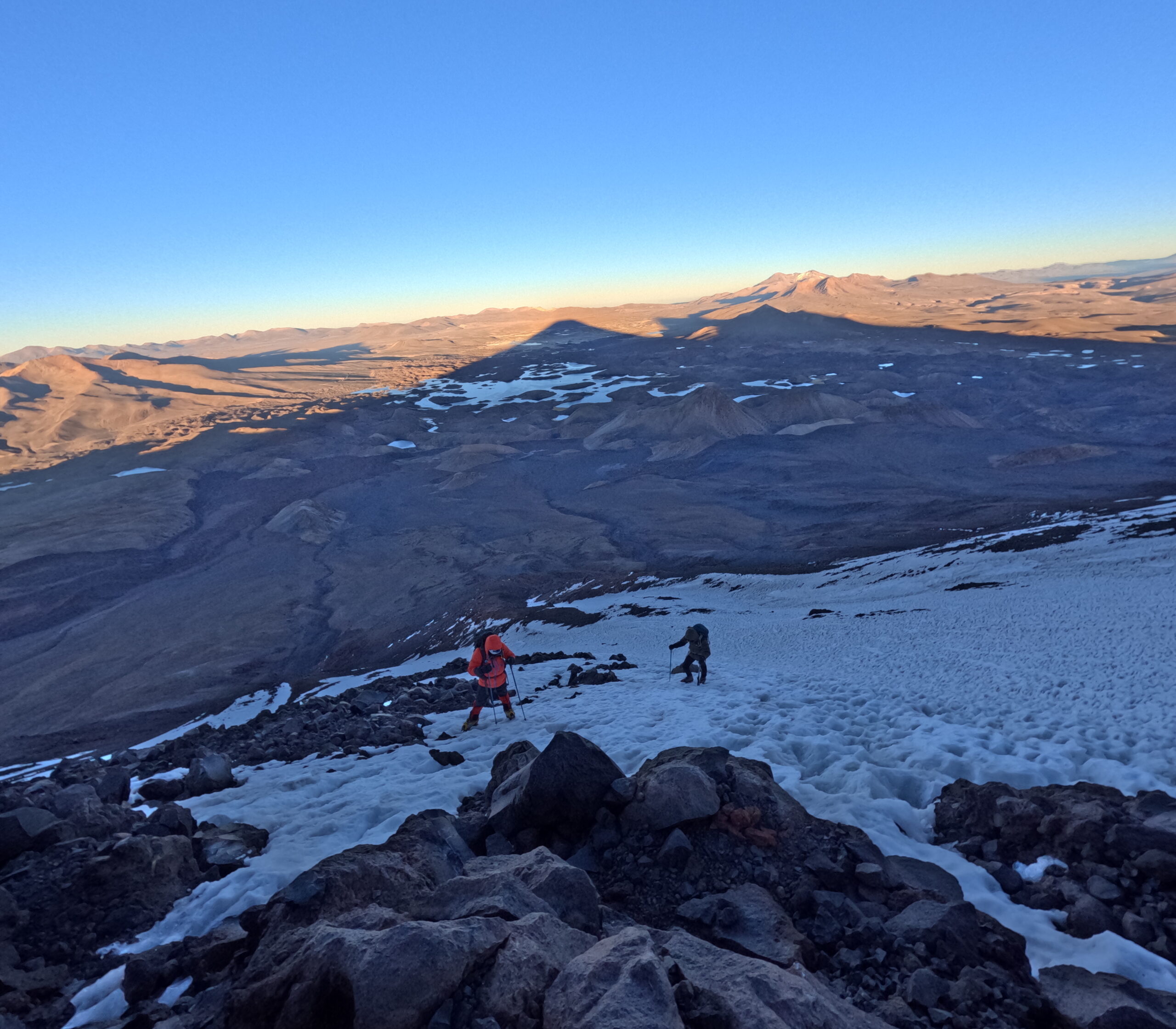 Este día se saldrá temprano en la madrugada con la intención de alcanzar la cumbre del Volcán Parinacota, donde se avanzará un total de 1000 metros de desnivel donde 800 metros serán realizados sobre terreno de nieve/hielo, posterior al ascenso se regresará al Campamento Alto, para desarmar y descender hasta los vehículos y regresar al poblado de Putre.