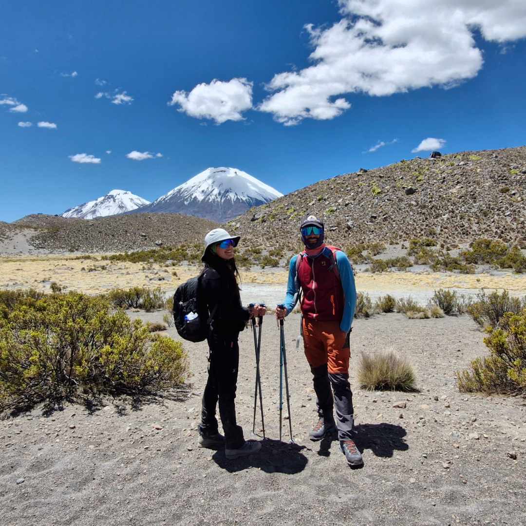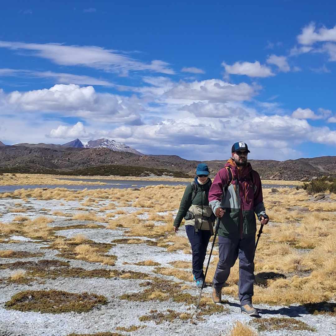 Comenzaremos la ruta de trekking desde el mirador de las lagunas, donde contemplaremos esta hermosa zona del altiplano chileno. Sus extensos paisajes se prolongan hasta la cercana frontera con Bolivia, en un entorno que sirve de hábitat a numerosos ejemplares de alpacas y vicuñas.